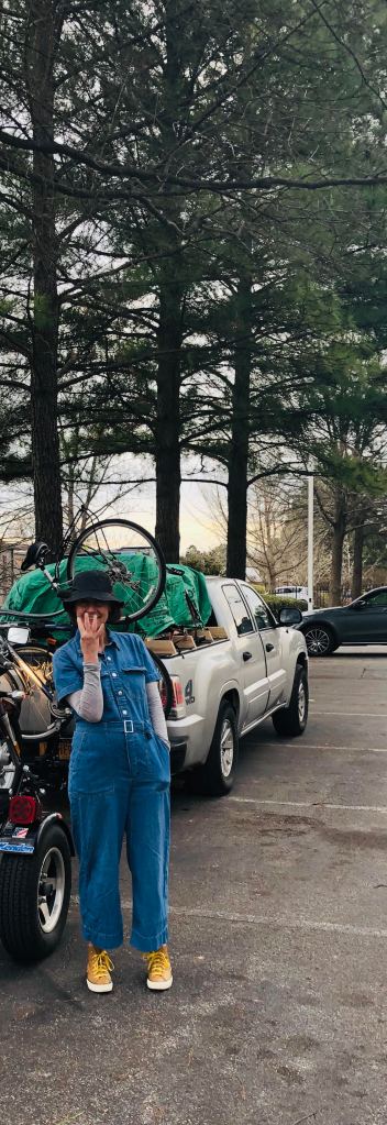 Hello, my people! Wow a bit of a gnarly ride today on the fourth and longest ride across this country of ours. First off, let’s talk about jumpsuits, shall we? (Let’s not so much talk about how small my fingers/hands are. A fact of which I’m reminded every time I look at this and yesterday’s photo.)