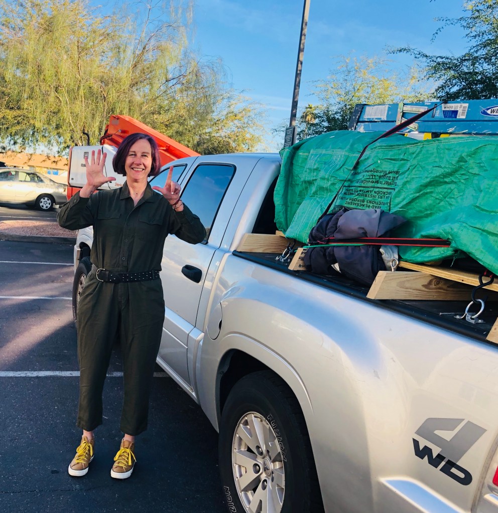 Hello, my wonderful people! This was it. The final jumpsuit for the final day cross country: Phoenix to my dad’s in Southern California. First off, I now know for certain that I have a startling amount of jumpsuits. I ended the trip as I began: With one of the first I ever bought. The one that started the, er, obsession after I’d seen my friend Elizabeth (aforementioned friend of style and art) wearing it and I then went out and bought it in every color. Soooo, anyway. We’ve landed in California.