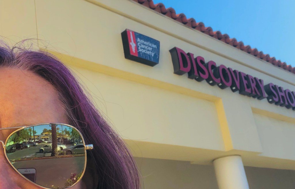 Now that we’ve been settled in the lovely Redlands area for a minute, I’m excited to return to the land of sustainable fashion ideas in the form of thrifting. Oh, my people, I am in awe of the wonderland of thrifting that is within this general area. From the American Cancer Society’s Discovery Shop (pictured above) that is a ten-minute bike ride away and across the parking lot from a cool coffee place called Stell to Redlands Thift Store, which should have the word store swapped out for ginormous cavern of all sorts of stuff that is both wonderful and slightly scary (but of course all that wouldn’t fit on the sign). That particular emporium is only a five-minute bike ride away, but luckily because I do not pull a small trailer on the back of my bike, I often must pass up the larger, nuttier items. But when Dennis and I have gone there…watch the F out because we must keep each other from going a little crazy over all the possible finds. We did find an amazing vintage treadle sewing machine for $40-ish on our first visit. It was on sale down from $99. And even though, no, I don’t sew, especially not by using my feet in some treadle-y way, gadzooks, it makes a nice addition to the living room–and sometimes a place to put a glass of wine.