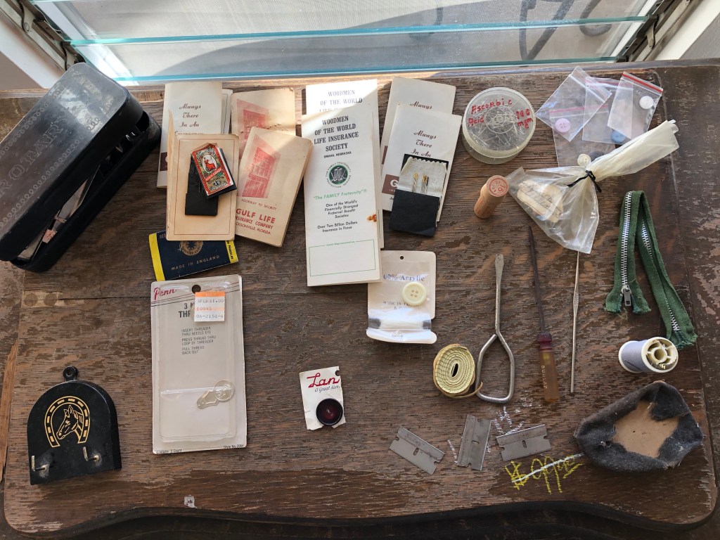 Also, for bonus points, there were all kinds of original items in the drawers, like extra needles from the Woodmen of the World Life Insurance Society (they claimed to be “One of the World’s Financially Strongest Fraternal Benefits Societies” altho I read it as one of the “Strangest” but I was wrong).