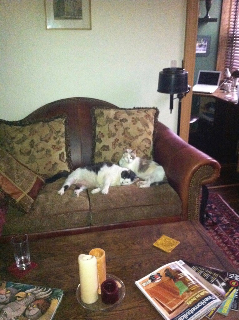 When my local nightly news source, PBS Newshour, pulled all their people indoors for segments, suddenly the awfulness that they were talking about, otherwise known as the news, became a study in diversions that had nothing to do with the words coming out of their mouths. Would you look at Judy Woodruff’s bookcase? That woman must be really into Civil War history. Jeez, Amna Nawaz has some excellent modern art on that wall. And so on. These observations would run along side what events were being talked about, so it wasn’t a total loss of information. But even a million months into at-home news segments, their are two journalists who could be telling me I’ve won a million dollars and long-lasting world peace had been achieved and all I’d hear for the first forty seconds of their mouth moving would be that Charlie Brown teacher blah-blah-blah sound. That is because I’m looking, actively nose-close-up-to-the-TV-screen attentive, to see if their cats are around. Lisa Desjardins and William Brangham each have a couple of felines that are incredibly entertaining. Dennis is really very patient with me during these moments since I might be blocking the screen. If they’re there, I get inordinately happy. If they’re not, I get over it fairly quickly, but still…I do enjoy seeing them and might feel a little gloomy if I don’t.