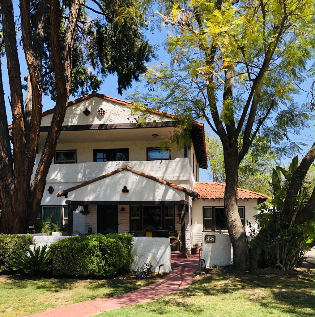 And so here I am, back in the place of my birth, teenage-hood, youth, college confusion. I’m not actually in Pasadena, Newport Beach, Irvine, Long Beach, or Huntington Beach, all the places I lived until I moved in 1984 back east, but even an hour-and-a-half-ish inland, the air, the foliage, the plants, birds, vibe, are all very familiar. It couldn’t have been weirder to move back on the cusp of a pandemic tho (duh. I’m betting almost every one of us couldn’t have had a weirder last year), but yet, wandering around Redlands on the regular has brought a sense of connection to the place that has more to do with the structures than the people. I see folx walking, biking, wandering, shopping, but there’s been no dining-in or connecting at yoga or what-have-you. Not gonna lie, I’m perfectly happy connecting to surroundings by making up stories about the people who live inside the houses I walk past. This area used to be all orange groves and some of the houses are just stupid with history and a kind of grandeur that suggests old-school wealth. Even the ones that are falling the F apart have levels and cupolas and detailing aching for Miss Haversham to step out and start screaming about. And then there are the basic Cali bungalows. Stucco. Acres of it. There are also quirky moments of street art—some of it chalk drawings on the sidewalk most likely made by kids and also some much edgier graffiti from taggers that may get done after dark.