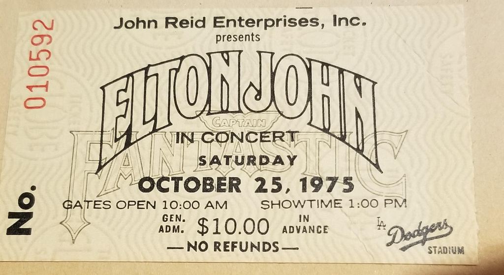 Anyway. My point. This piece of paper paper took me right back to a specific time, because of course it did. No matter how hazy my memories, these formative moments were and still are so real and hearing from my old friend, someone I’d lost touch with and who happened forty-plus years later to read words I’d written now, then she got in touch is just … well, I’d use the words mind blowing again, but I think there’s a limit. So what fires me is just how weird and synchronic the world can be. I was here, I left, I came back. I wrote about it. I was then brought all the way face-to-face thwap back to some really good moments of pure pleasure. I can’t say I remember anything but happy adrenaline from looking up on a stage, general admission and as I remember it close enough to see him in his sequin Dodger Uniform with Elton 1 on the back and LA on the cap. The heat, lights, crowd, euphoria of the music and the moments. Melting, smiling, just so happy. I’ve been aiming to achieve that level of abandon and merge with sound ever since. And I’ve succeeded quite a bit. (notwithstanding the one time I merged too much with the music after someone spiked my coke at CalJam II and I thought Ted Nugent was actually on fire. And that was not good.) But this knowledge of music’s power is also a reason I’ve found disappointment in it over the last little while. The seeing-behind-the-curtain business of it hacked away some magic. Maybe my expectations are too high. But yet, this specific memory became a happy gateway for others. And for that I’m profoundly grateful.