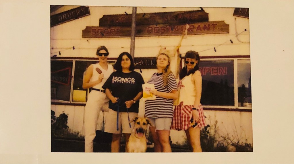 Last weekend & this we went a’visitin’. After so long not being in the actual presence of friends, it was an amazing thing to spend time, tell stories, eat food, have drinks, and do all the things I’d both taken for granted and sometimes become socially anxious about all packed into two consecutive weekends. A mix of nostalgia for the way-back times and discussion on where I’m planted now. And I was surprised by how energized I felt. As a friend in New York mentioned, to spend time just literally hanging out—not getting particularly deep about things, just reviewing what’s what—was refreshing in a way I didn’t expect. Our first stop was to my dear friend of near-on four decades, Mary, who I’d been lucky enough to see here in Redlands recently, but visiting her place and lunching was fab. Then to LA where we stayed & dined with friends I’ve known since music dayz and who are now pals with Dennis too. My mind refuses on a pretty basic level to understand that it’s been three decades-plus since I’ve known them all and our stories, while dim in details, still feel fairly recent in a time-warpy kind of way. Revisiting moments in the past was comforting in the sense that yes, we all made it through, but also in a tree-falls way i.e., confirmation that certain things did happen even if we remembered them differently or as if they’re echoes. Luckily Russell had an actual photo album of a certain Lake vacation we all went on that confirmed our existence (to an extent).
