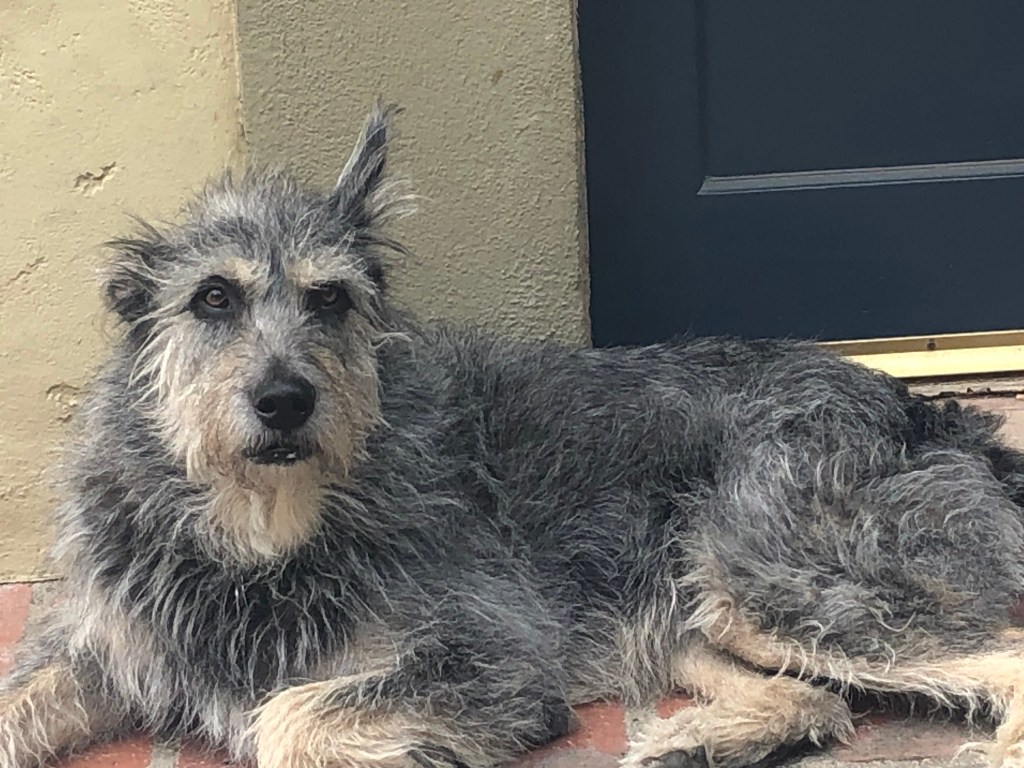 Before we left town, we stopped into Vroman’s bookstore, my all-time favorite and most likely first bookstore ever visited. I bought some things. Driving home, it did occur to me how much I don’t remember. How in living moments, I took for granted one thing merging into the next. Until really recently–and sometimes still–I would worry Why can’t I remember that situation in detail, etc.? but overall I’m letting that go. Here are the things in life. Here are the people. Here I am now. Oh…and here is a most awesome mutt, our hosts’ pooch named Victor who, as you can see in his eyes, is just not bothered by any of it…memories, past, future….pffft. Just now, and maybe, why in hell are you taking my picture?