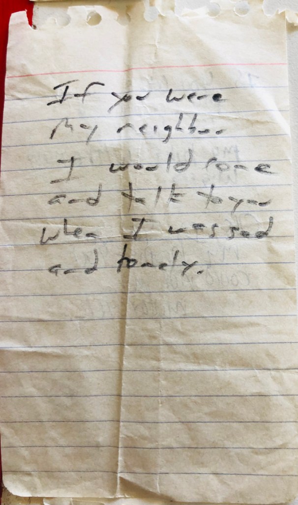 I flipped it over and wrote something back. Then another note, apropos of nothing that I can remember, landed.