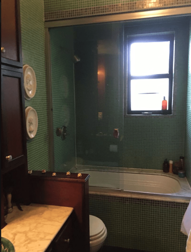 Stepping into apartment 3D was mind-boggling on a purely how-did-he-do-this? level. Some people may (&do) ask me, How does it even work to write a story out of whole-cloth, thin air? I can’t explain it and if I tried it would without doubt bore a person to glassy-eyed death. Walking around 3D though, I wasn’t bored hearing about beveling and planing and the hand-grooving of cherry-wood cabinets. I mean, I didn’t understand any of it, but whatever. The amount of passion in D’s voice explained it completely. Then I walked into the bathroom. And that was it. For those who don’t know me well, I’m a water person. Vessels filled with (sometimes too) hot water are my magic place. Throw in some eucalyptus or lavender and bubbles and I’ll likely stay there forever. When I stepped through the door into the 3D bathroom I remember distinctly thinking, Well, that’s it. I’ll have to move in. Most especially into this particular room.