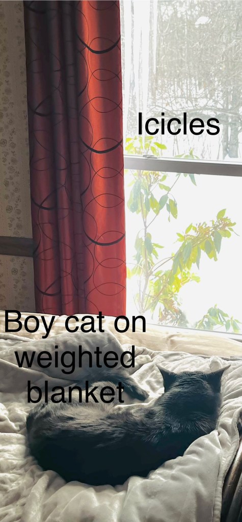 Before I move on to the speaking bits, an observation: Icicles are the damndest things. They seem weirdly strong, as currently evidenced out our window where there are a few that have been hanging out for days in the teen- and twenty-degree weather. I seem to remember from my little days a fairy tale about an icicle that pierced the heart of…someone…and something dramatic happens because of course, it’s a fairy tale. The only example I can find is the Hans Christian Andersen’s “The Snow Queen,” which, who knew, was loosely used as a basis for Frozen (and, NO, there will be no earworm of that movie’s sooonnnnggg. But while we’re here, a side note for D, Julian, and Beth, here’s the Frog Prince fairy tale and another link too).