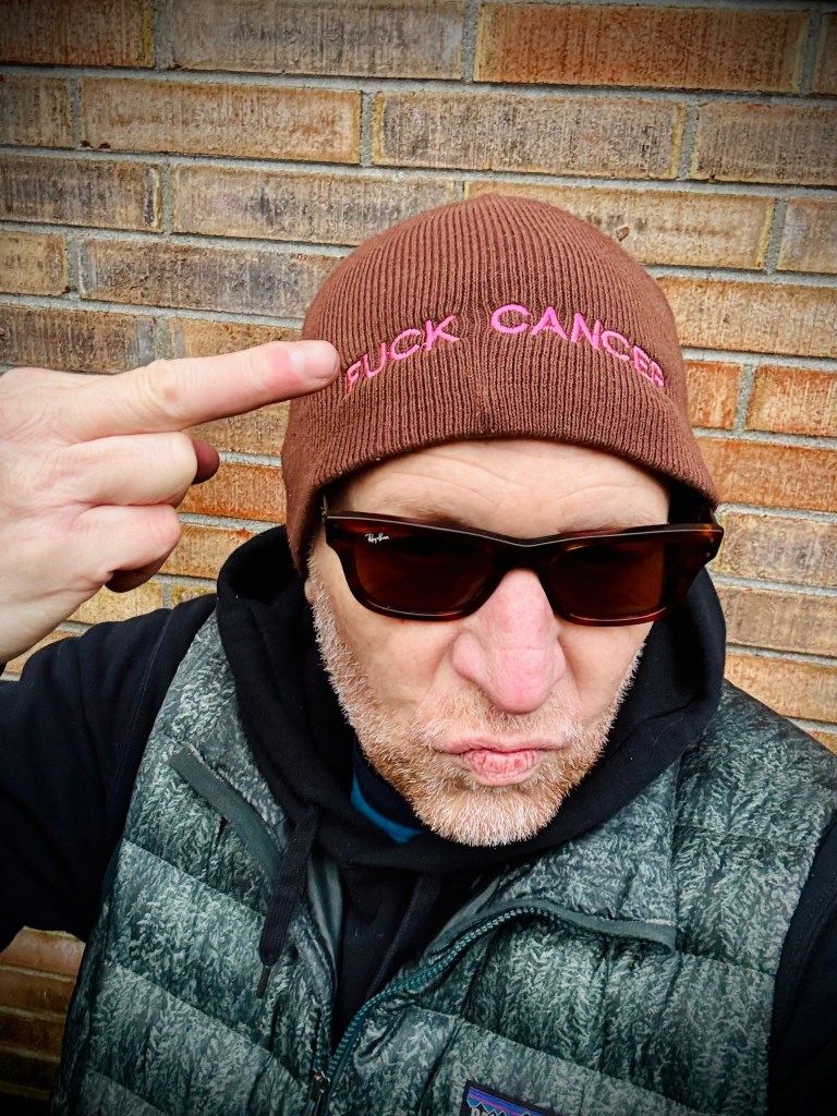 A friend from my music dayz, Jackie Farry, died on January 12th from the multiple myeloma she’d had and lived with for 20 years. As this piece in The Hollywood Reporter shows, she was an unsinkable spark of awesome whether hanging out with all the great unwashed at the time (& I do mean great, from Joey Ramone to Evan Dando with a lot of metal, grunge, alternative folx along the way). Post the C diagnosis, she started a line of Fuck Cancer hats (available here) that I would send to my friends dealing with that fukn invader. If you can sneak onto her FB page, you’ll see all the snaps of bands and her smiling face.